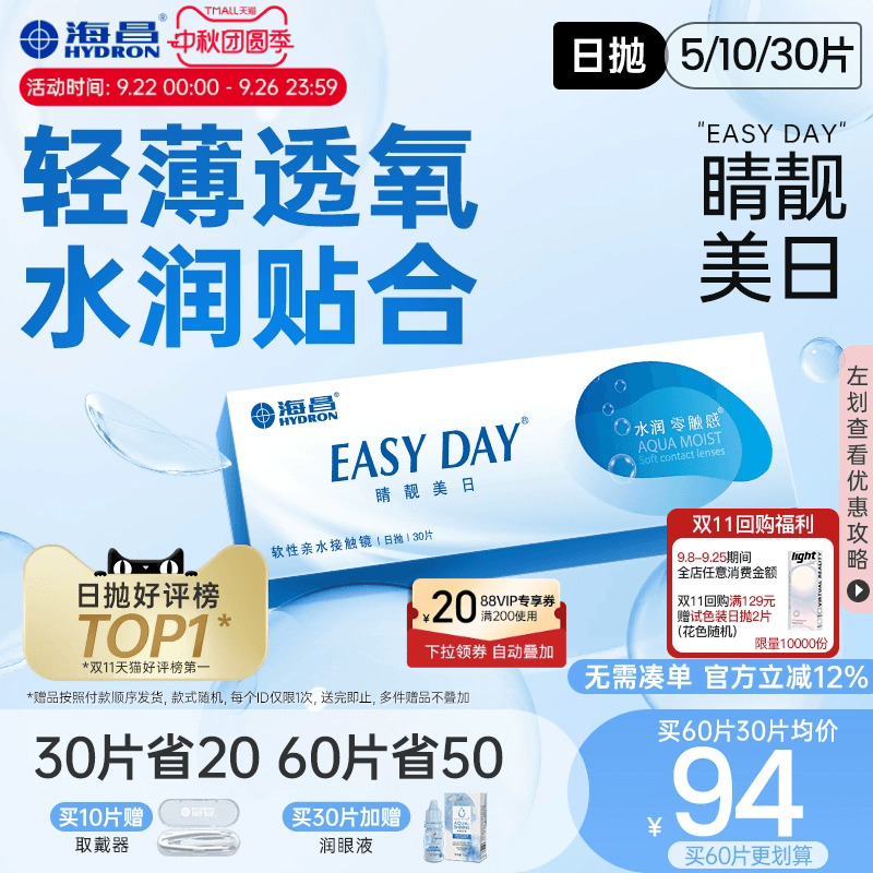 今日推荐:海昌官方旗舰店隐形近视眼镜日抛5片/30片水凝胶睛靓美日官网正品