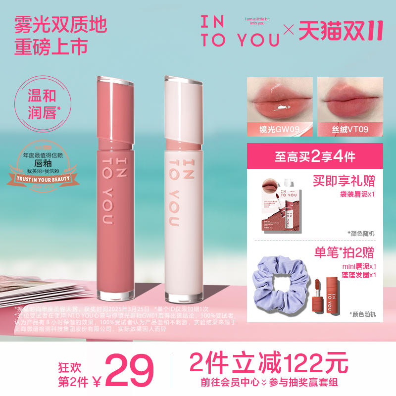 【双11】INTO YOU镜光丝绒唇釉口红唇蜜唇彩镜面水光素颜黄子弘凡