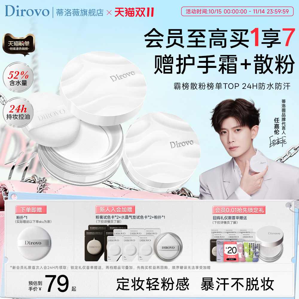 【双11抢先购】dirovo蒂洛薇水散粉控油定妆防水防汗蜜粉持妆粉饼