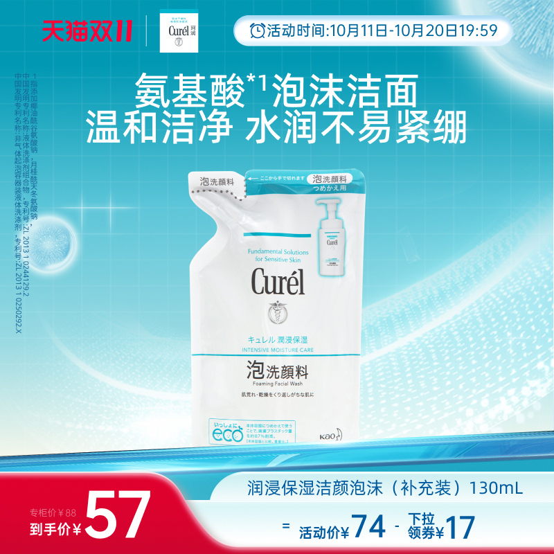 【双11抢先购】珂润保湿/控油泡沫洗面奶补充装130ml/130ml*2