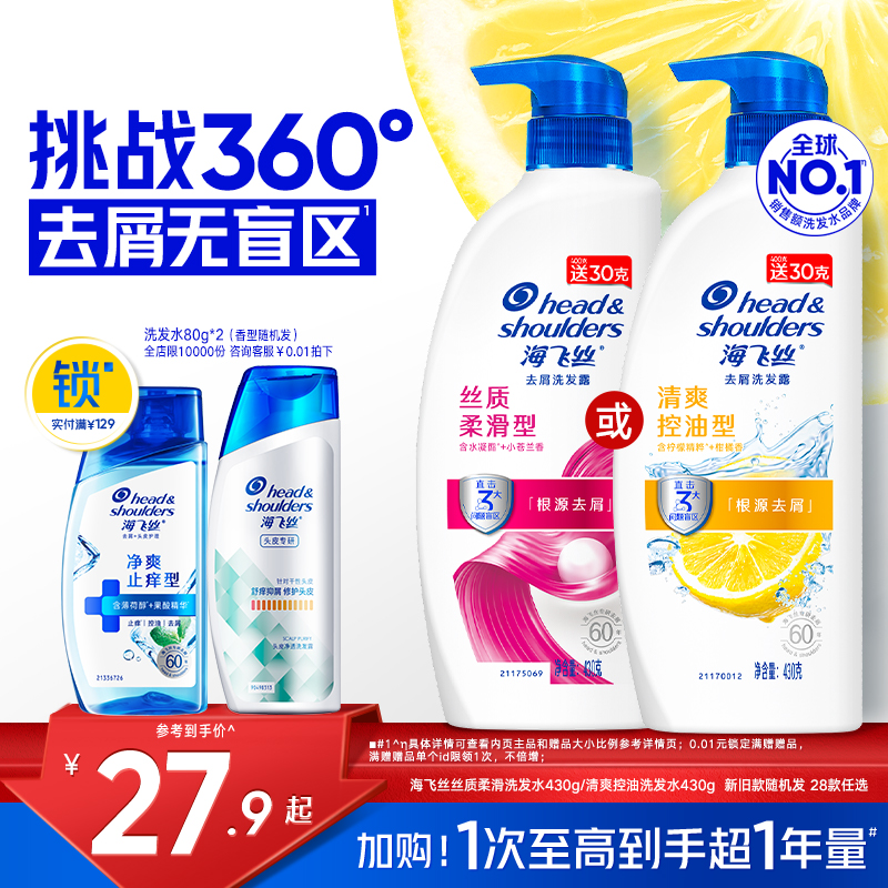 【双11加购】海飞丝去屑控油洗发水/丝质洗头膏/止痒洗发露任选