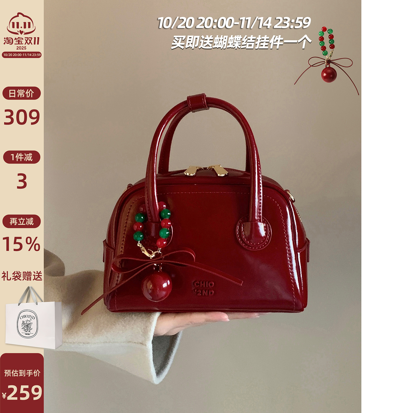 南风Chio2nd Ceir高端真皮系列 圣诞宾果枕头包女红色手提斜挎包