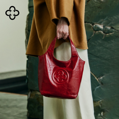 卡思乐红色新娘婚包植鞣牛皮MINI马甲手提包复古樱桃红色小托特包