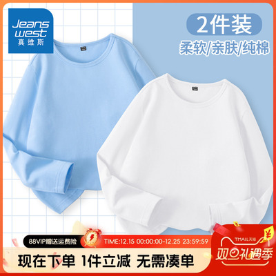 真维斯童装男童长袖t恤春秋款儿童秋季打底衫女大童白色纯棉秋衣