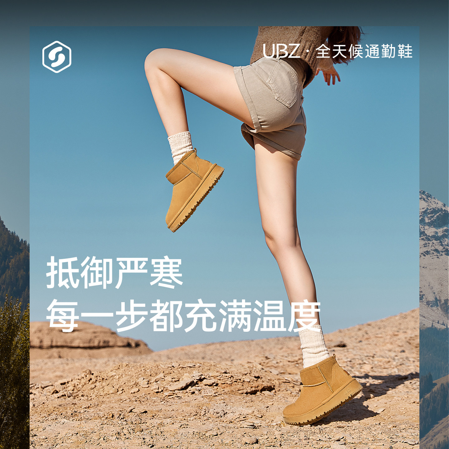 UBZ 防水厚底增高雪地靴女加绒男士加厚白色防滑保暖情侣东北棉鞋