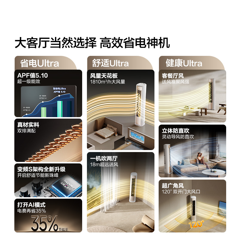 今日推荐:海信大薄荷空调智省电Ultra大3匹一级变频家用客厅立式柜机换新