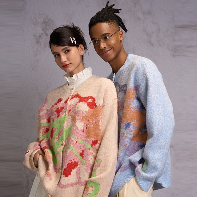 蜡笔涂画形式的手绘彩色提花 情侣同款