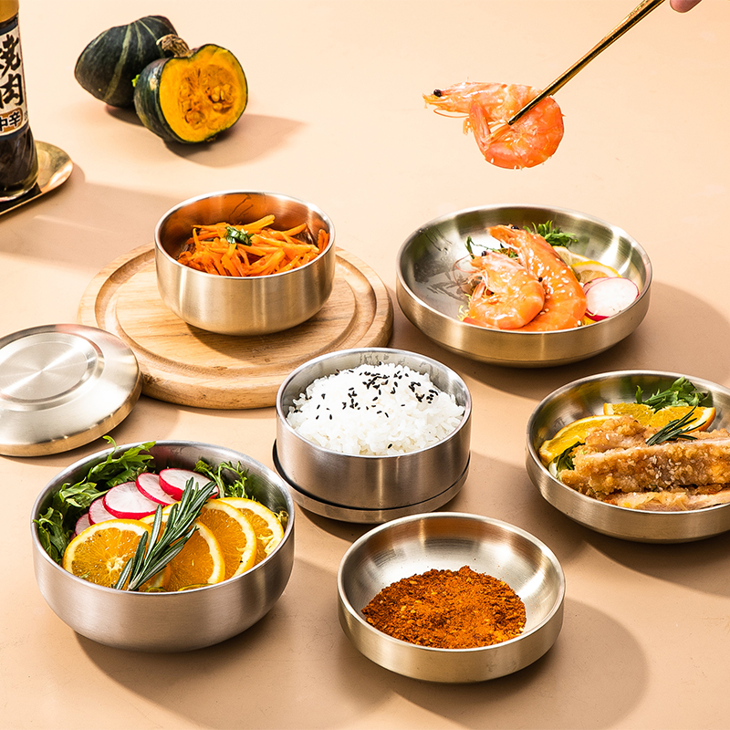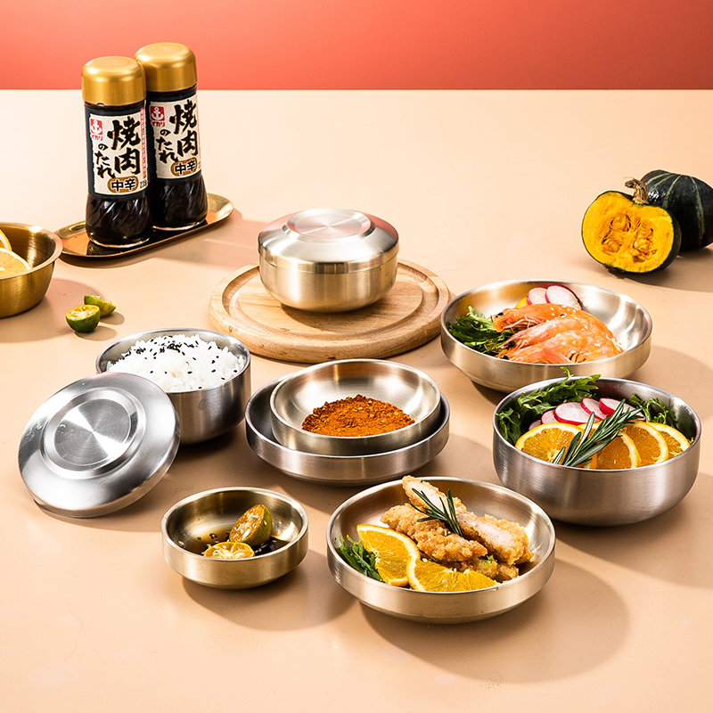 韩式304不锈钢碗碟盘套装家用带盖米饭碗韩国料理泡菜碗餐厅餐具
