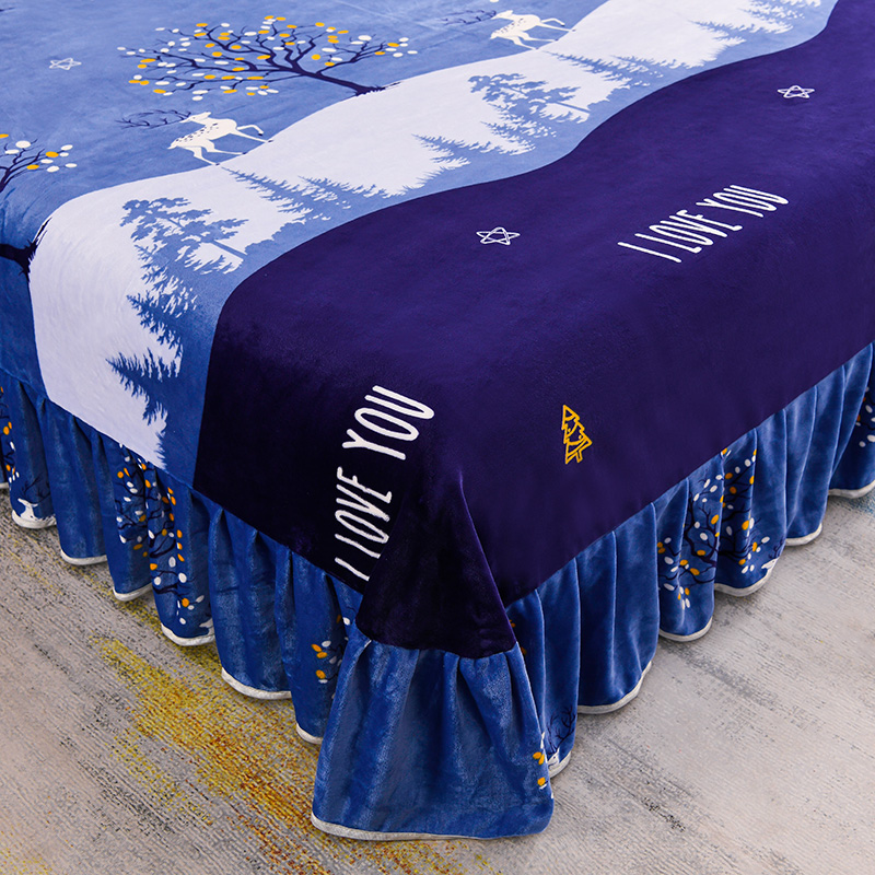 床上用品冬季牛奶绒四件套珊瑚绒被套床单裙法兰绒加厚毛绒双面绒
