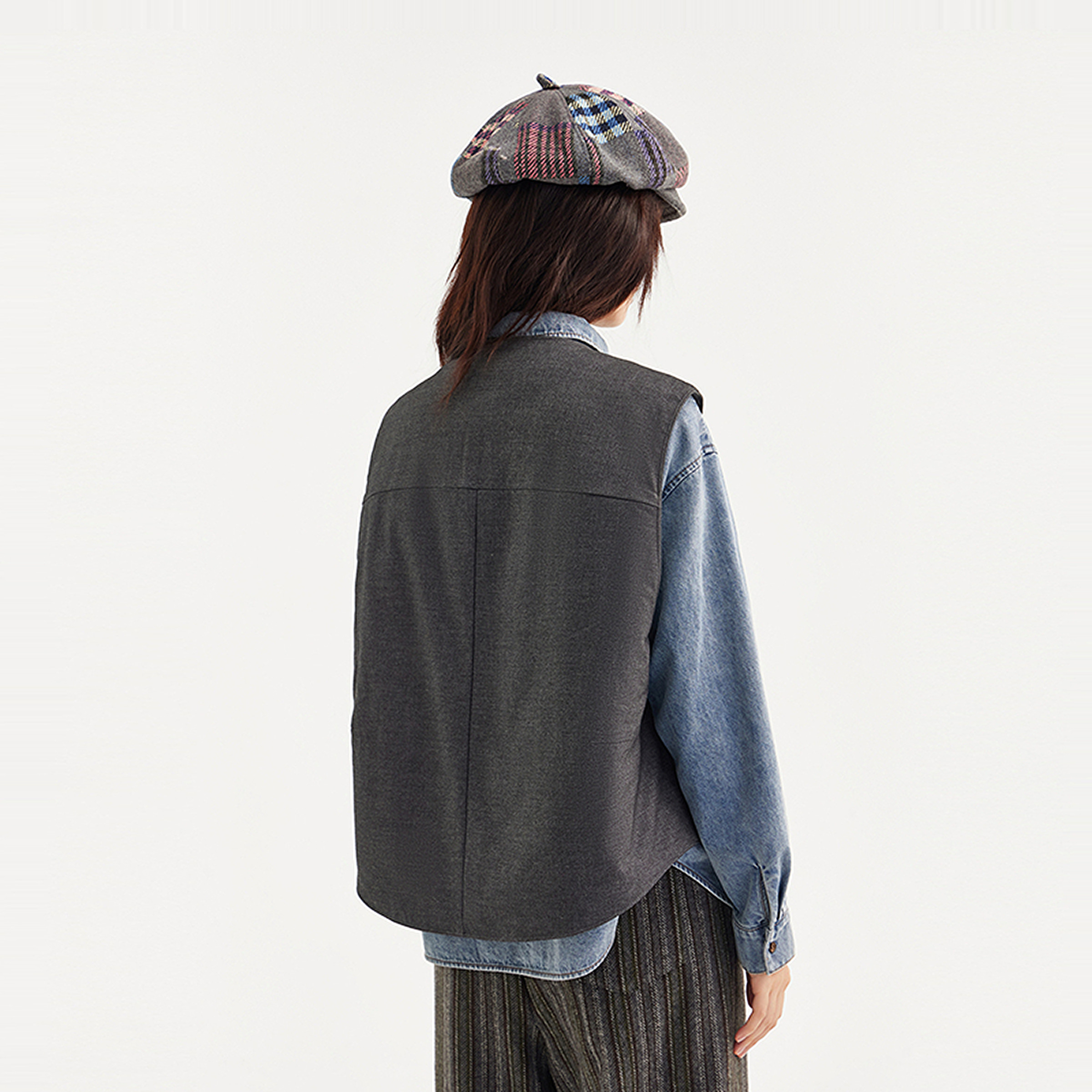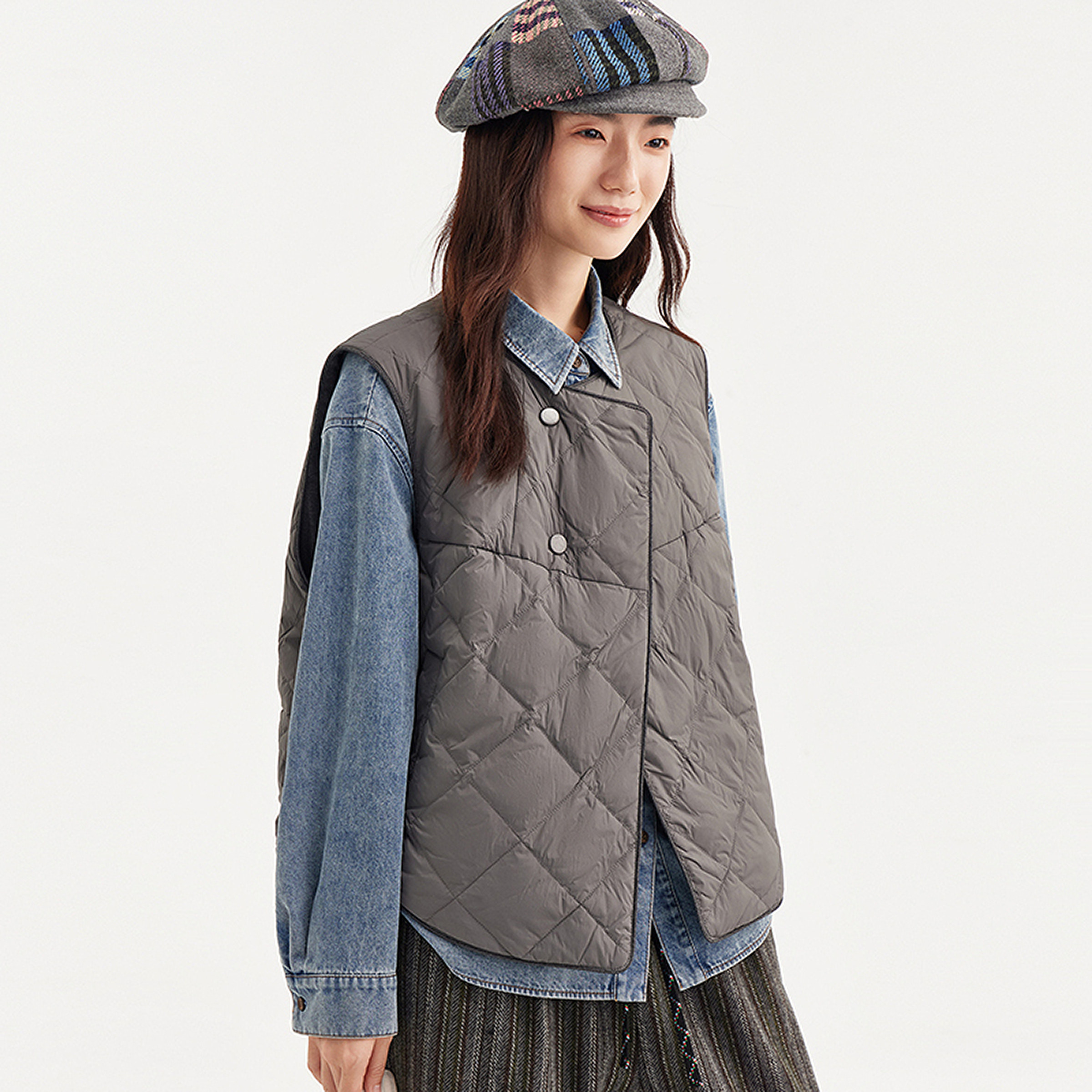 飞鸟和新酒两面穿羽绒服马甲女2025秋冬季新轻薄短款灰色羽绒背心