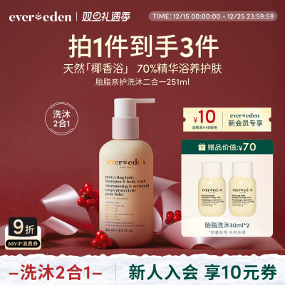 Evereden安唯伊新生儿婴儿植萃无泪胎脂亲护洗沐二合一沐浴露泡泡