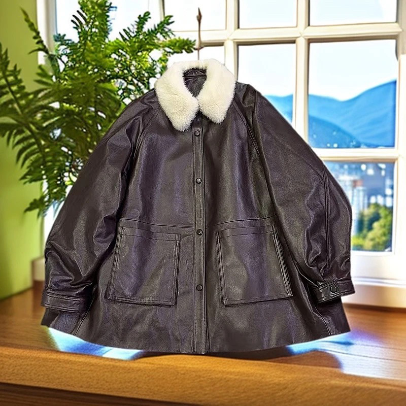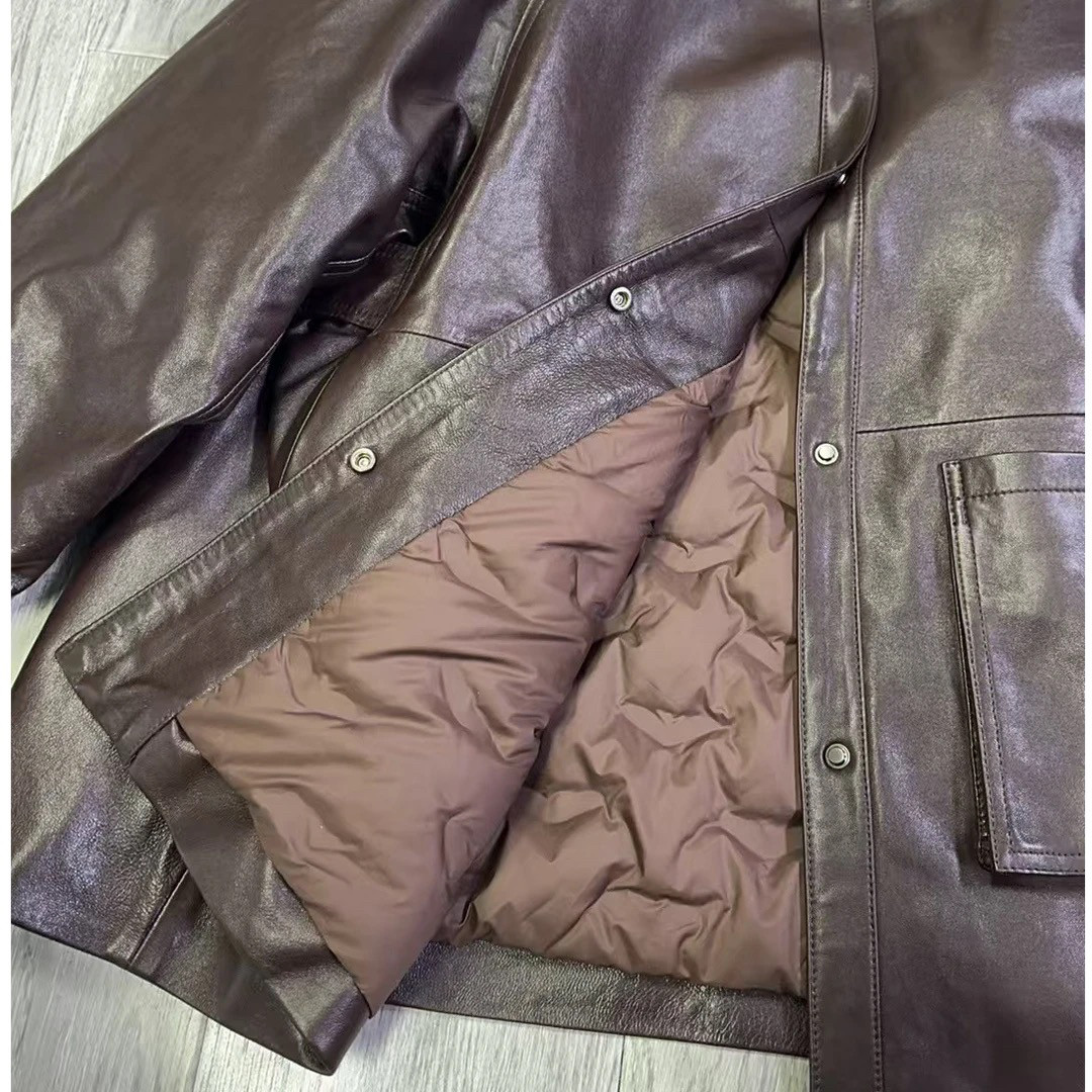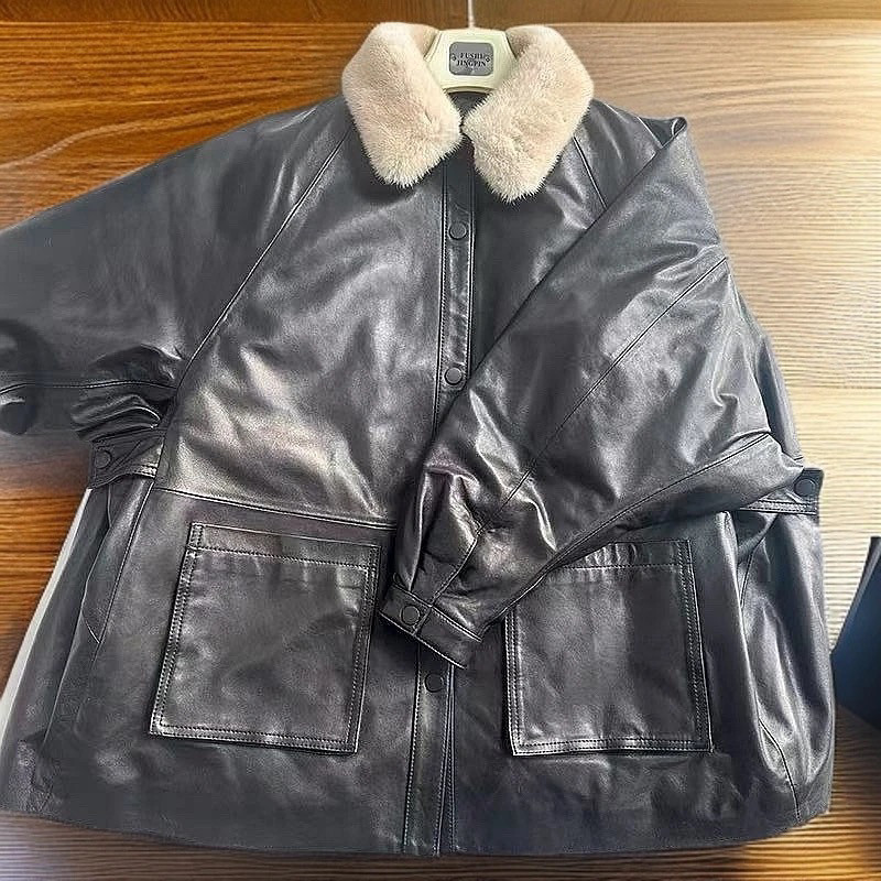 冬季新品进口油腊皮水貂领白鹅绒宽松皮衣欧货羽绒服中长外套女潮