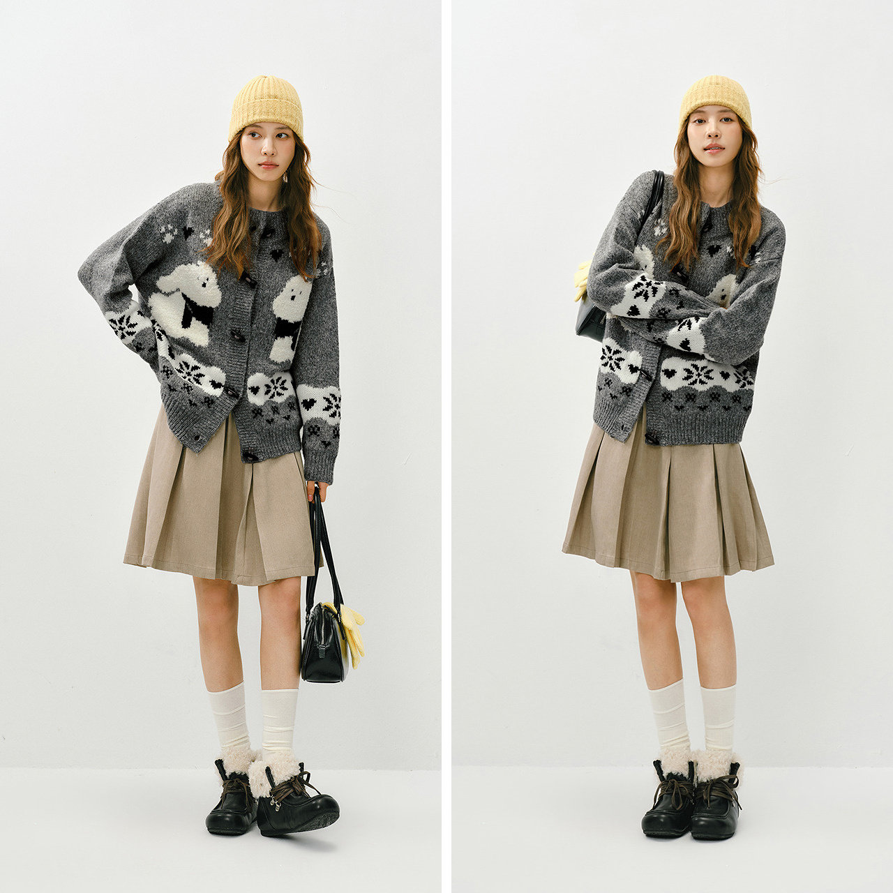 风吹小狗萌趣提花打破沉闷 温暖有型半高领