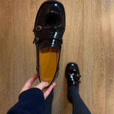 羊皮版~复古雕花圆头乐福鞋女皮带扣英伦风小皮鞋真皮一脚蹬单鞋