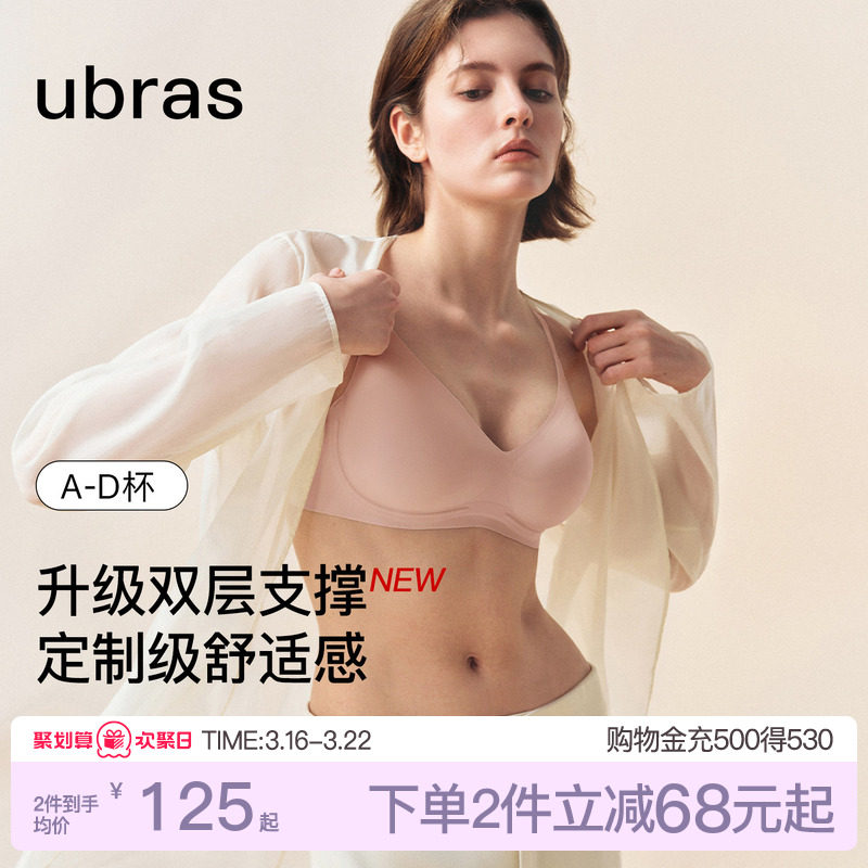 ubras浮浮撑小奶皮无痕收副乳小胸聚拢粉底液无痕文胸罩内衣女