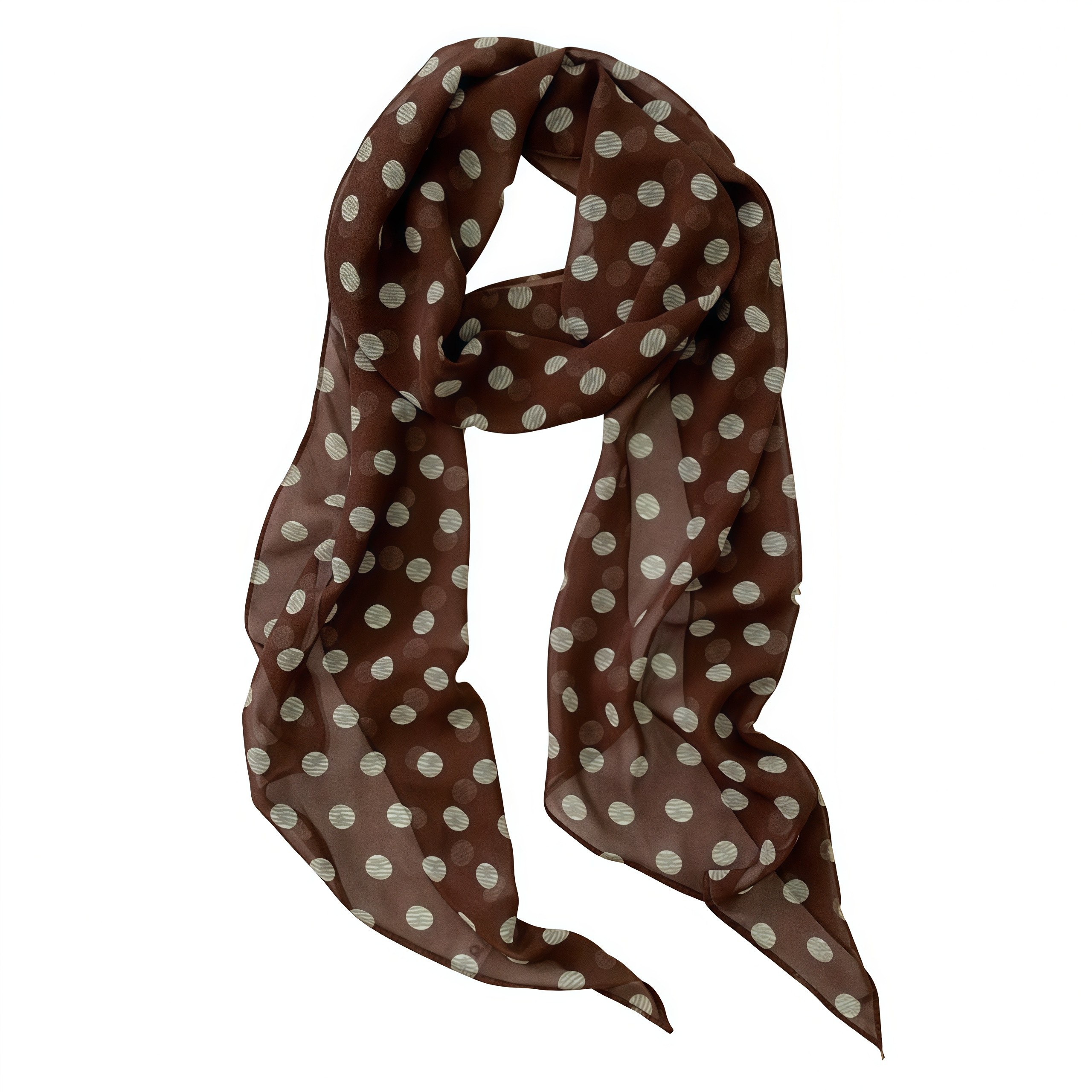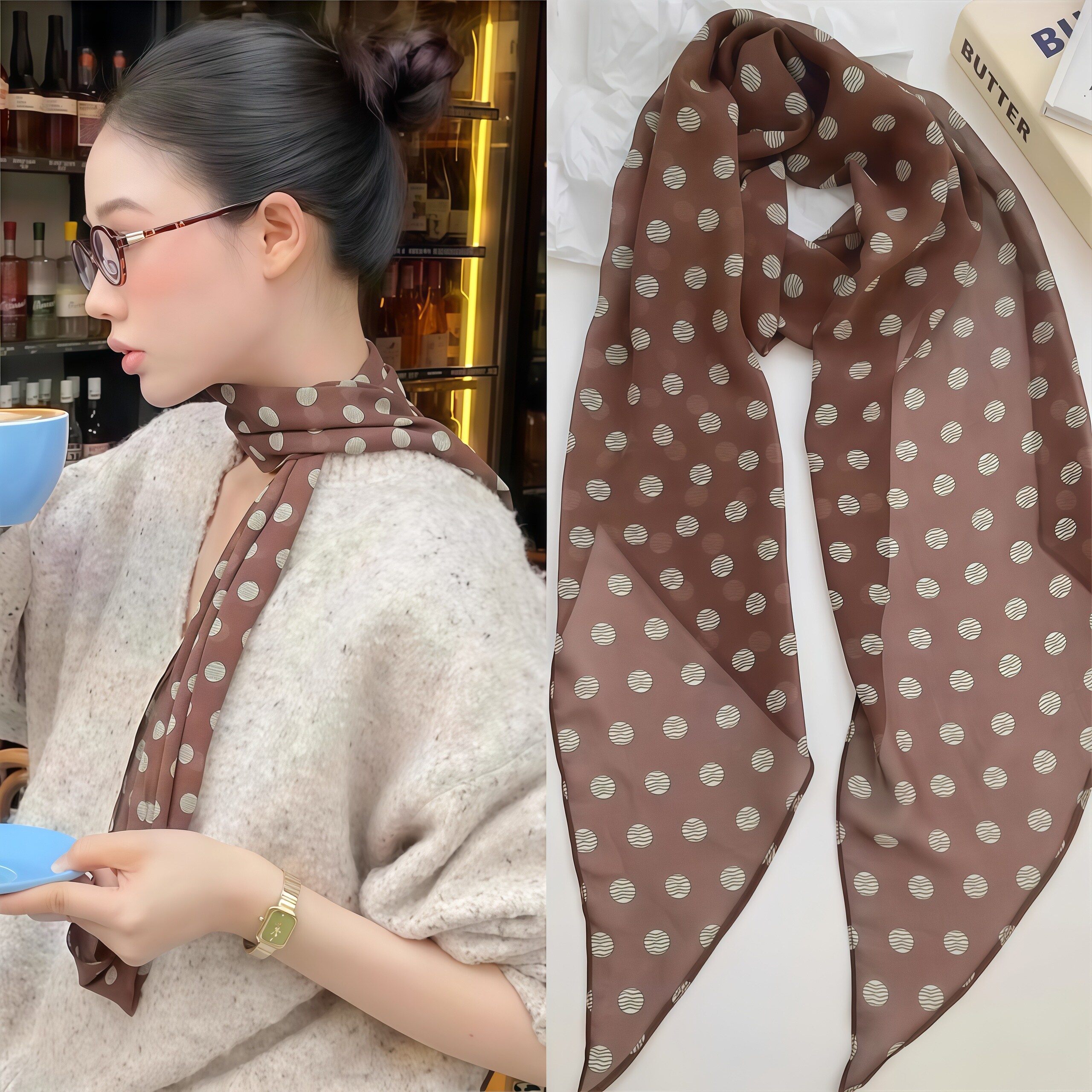 法式复古棕色波点丝巾女士系脖薄款长条围巾飘带颈饰裤子配饰腰带