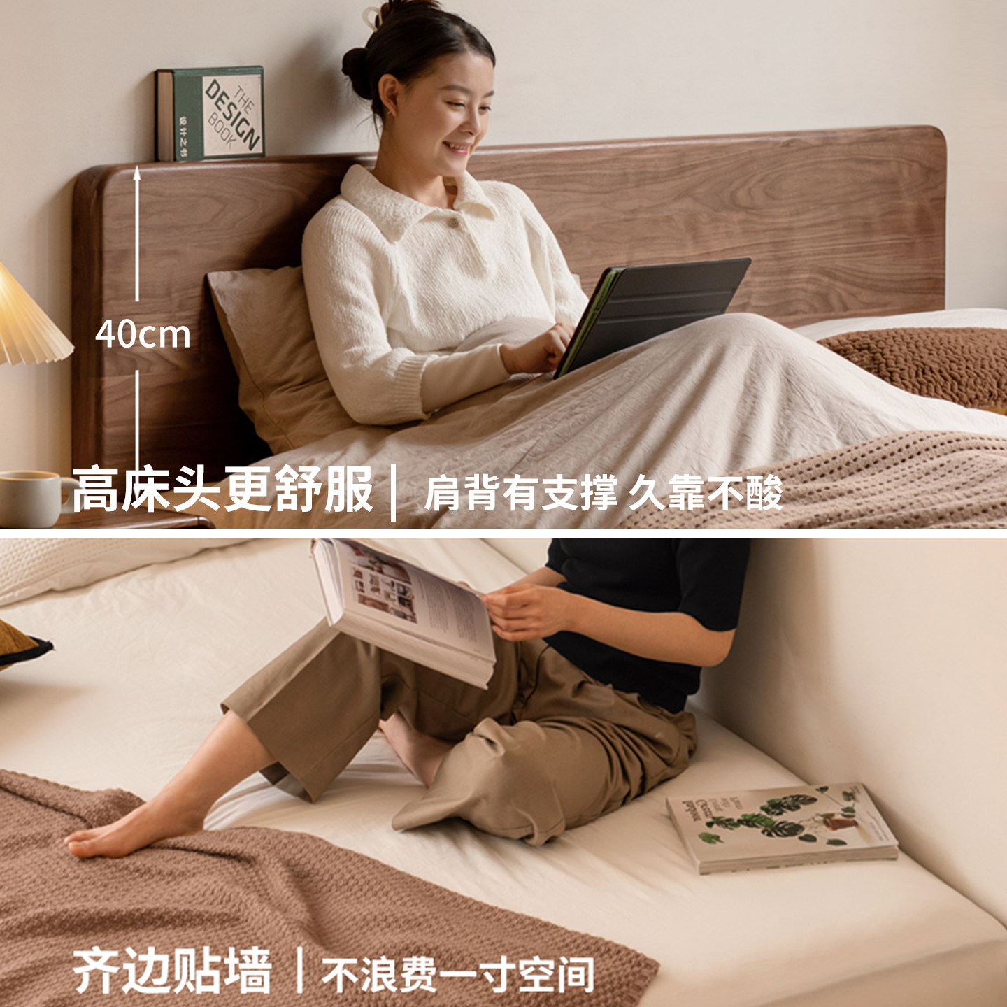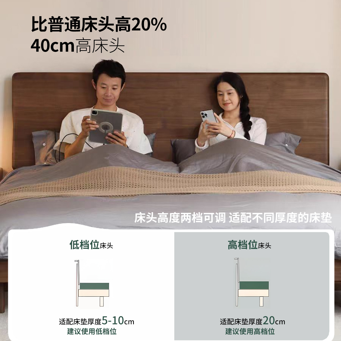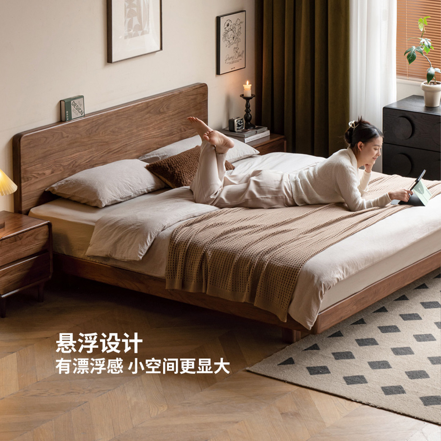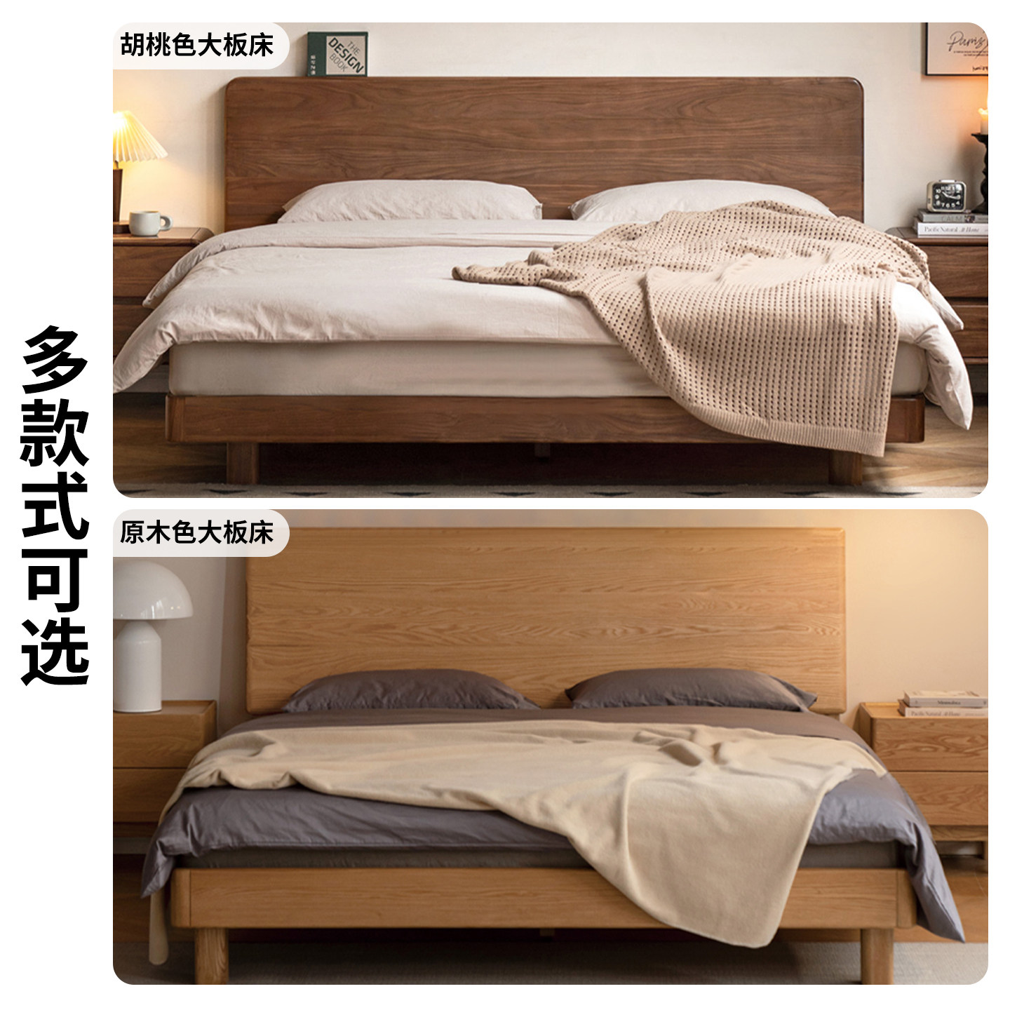 床实木床现代简约1.8m家用卧室橡木床1.5m出租房用胡桃色单人床架