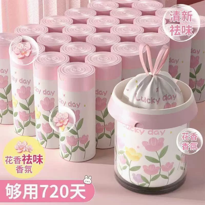 印花加厚垃圾袋家用加厚手提式厨房大号一次性清洁抽绳垃圾袋加大