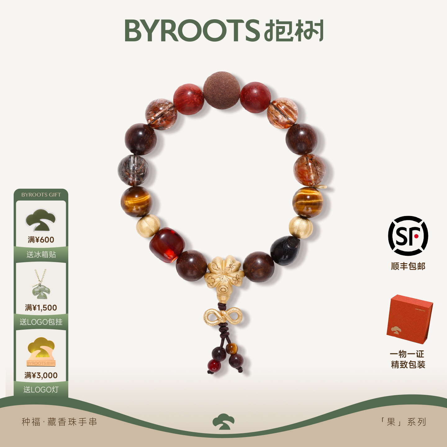 BYROOTS/抱树种福藏香珠手串女虎眼石黑金超七手链情人节生日礼物